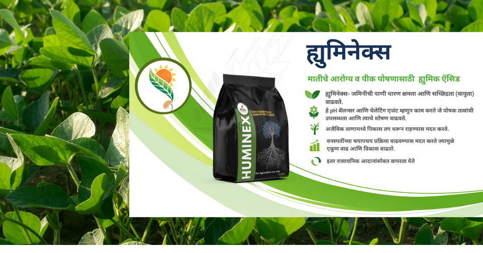 Foliar application: Spray 2 g of Huminex -98% WSP per litre of water, 2 times in a crops cycle at critical stages viz. Vegetative, Flowering and Fruiting.